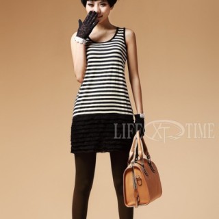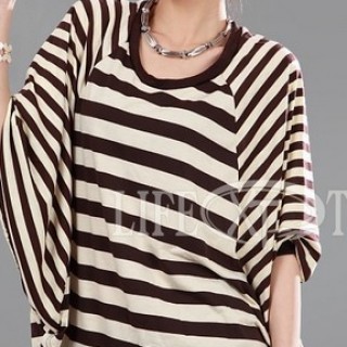 [招商]海军风蓝色条纹拼接T恤批发 纯棉中长款T恤批发