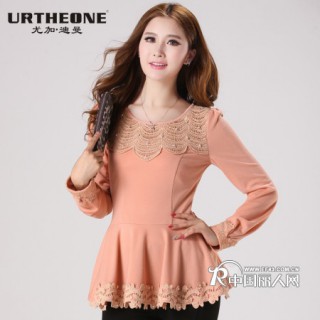 [招商]尤加迪曼2013秋装新款圆领长袖蕾丝镂空修身针织衫62207