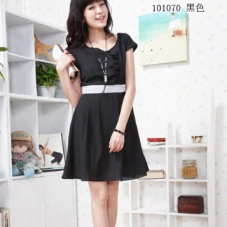 [供应]特加依-101070服装店进货渠道优雅俏佳胸前折叠精心设计撞色连衣裙