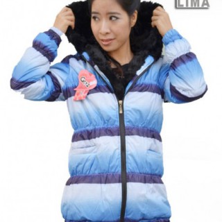 [供应]渐变紫蓝色羽绒棉衣厚厚的毛领搭配展现高贵优雅时尚气质