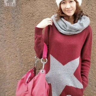 [供应]韩版中长款五角星宽松毛衣配围巾厂家直销韩版时尚款毛衣