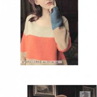 [供应]撞色宽松蝙蝠袖口袋拼接毛衣打造光鲜艳丽时尚超人风采