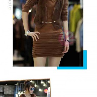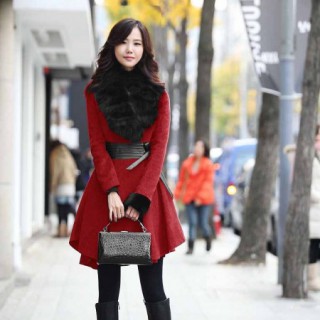 [供应]狐狸毛领百褶真皮收腰毛呢大衣厂家直销淘宝网热卖款