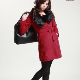 [供应]2012绝佳新款抢先登场气质女装收腰濑兔毛领呢子大衣