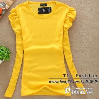 [供应]泡泡袖长袖打底衫T恤批发女装打底衫批发高领打底衫批发纯棉打底