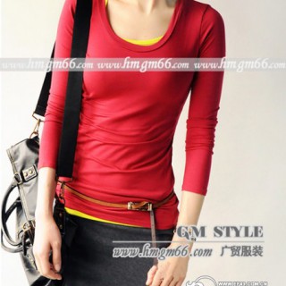 [供应]最低价女装打底衫批发纯色圆领女装打底衫批发