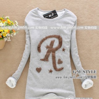[供应]韩版便宜卫衣批发学院清新秋冬保暖加绒显瘦字母圆领休闲包臀绒衫