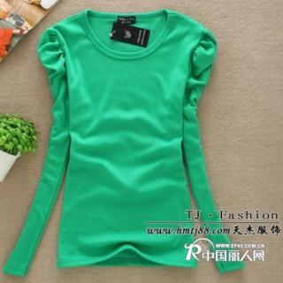 [供应]女款泡泡袖打底衫批发女装泡泡袖纯色打底衫批发女式泡泡袖长袖打