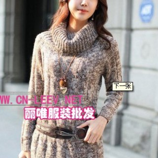 [供应]秋冬新款女装 修身长袖高领长款针织毛衣打底衫连衣裙 MY72