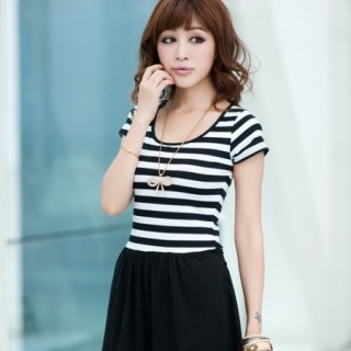 [求购]女装t恤批发韩版纯棉长袖圆领条纹修身长款t恤批发