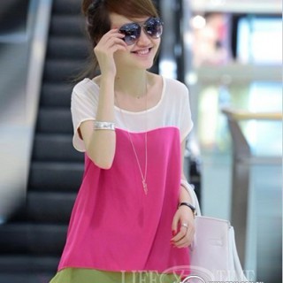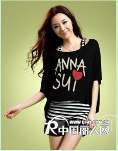 [求购]新品休闲女装蝙蝠短袖拼接圆领休闲宽松T恤批发