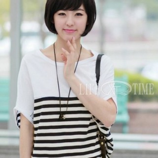 [求购]2012夏装韩版 短袖t恤 新款条纹长款修身女装T恤批发