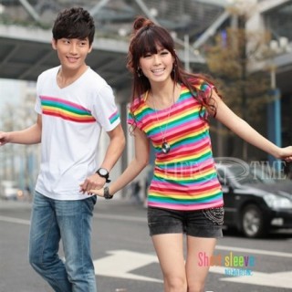 [合作]韩版2012夏装新款女装休闲拼接印花短袖T恤圆领印花修身T恤