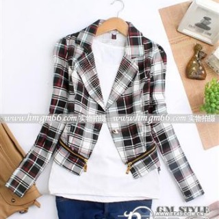 [库存]西装外套批发复古格仔西装外套格仔外套批发时尚小外套批发格子西装外套批发韩版女装外套批发