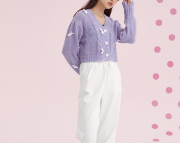 薰衣草紫的针织衫更加温柔,可爱的白色小兔子让针织衫具有更多活力,让温柔的针织衫也变得俏皮可爱了起来,高腰针织衫搭配白色休闲裤更加的帅酷,遮肉显瘦的同时也有自己的穿衣风格,上紧下松的穿衣方式非常好的勾勒出曼妙身姿,摇曳动人,女人味十足。
