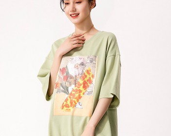 近几年oversize版型的衣服备受人们喜爱,不仅穿上十分潮酷,也非常的舒适自由,夏天选择一件宽松的T恤则更加清凉舒适,这件绿色印花宽松T恤,休闲随意,更适合日常穿搭,下身搭配一件短裤,潮酷具有个性,也更加清凉,非常适合夏天的穿搭。